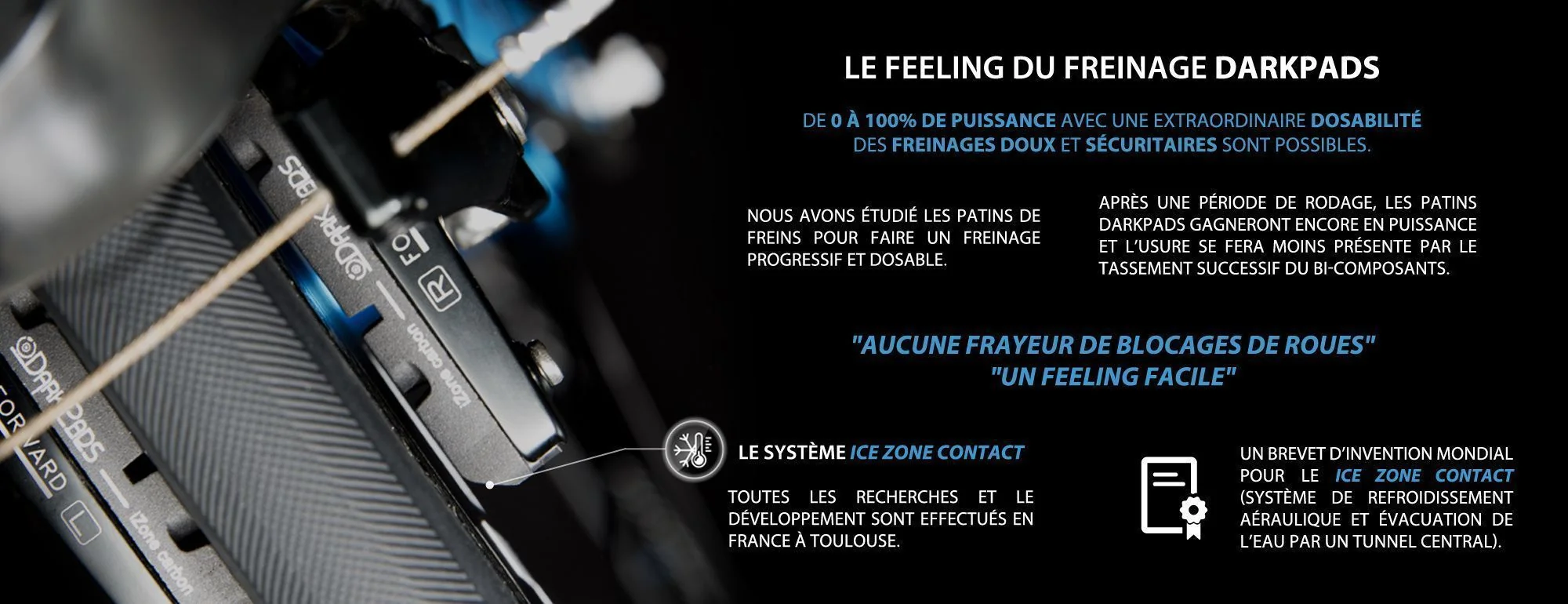 Le patin DarkPads ice zone contact carbon est une nouveauté qui fait l'objet d'un dépôt de brevet d'invention international.