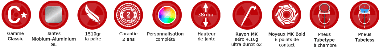 - Jantes MK all alu patins 540gr par cercle & 38mm de haut - compatible pneus/chambres ou tubeless