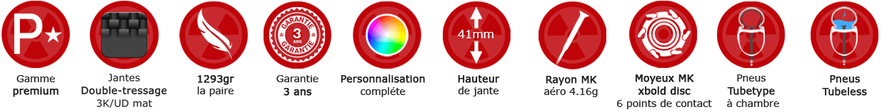La gravax 41 une paire juste exceptionnelle, une énorme optimisation de la maniabilité et du placement de roue avant. Un aéro supérieur au gravax 31, une plus grosse structure de jantes et des rayons plus court donc un peu plus de rigidité.