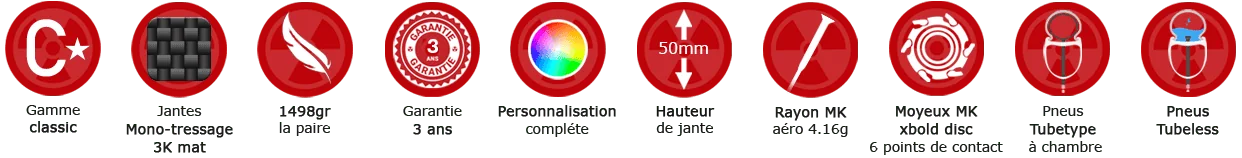 - Jantes MK middle 50 disc classic 445gr par cercle & 50mm de haut - compatible pneus/chambres ou tubeless