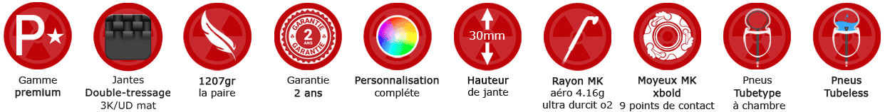 - Fonds de jantes MK HP ou scotch tubeless MK HP + valves MK pressure