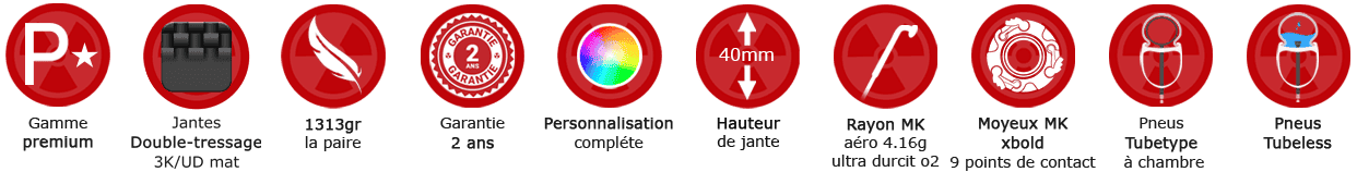 - Fonds de jantes MK HP ou scotch tubeless MK HP + valves MK pressure