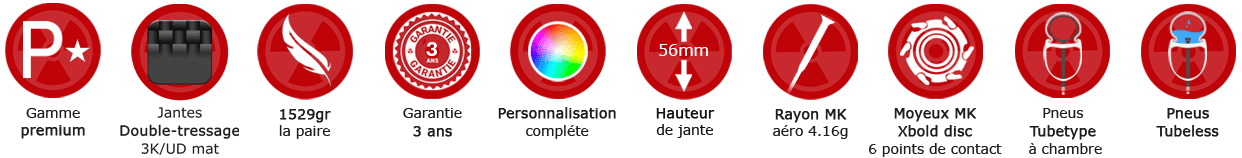 - Jantes MK stark U56 disc 490gr par cercle & 56mm de haut - compatible pneus/chambres ou tubeless