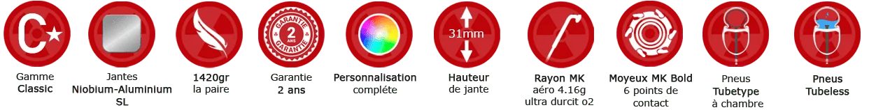 - Fonds de jantes MK HP ou scotch MK HP tubeless + valves MK pressure