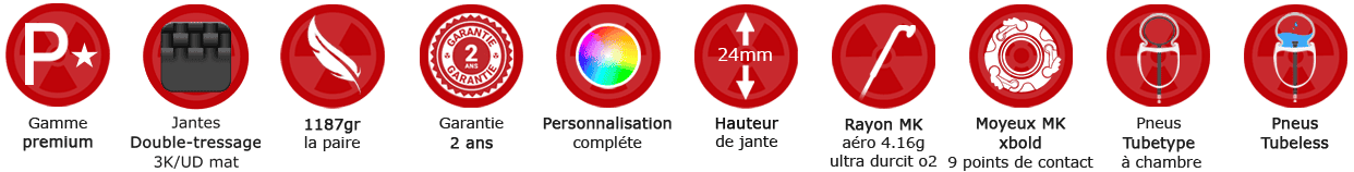 - Jantes MK xslim 24 premium patins 350gr par cercle & 24mm de haut - compatible pneus/chambres ou tubeless